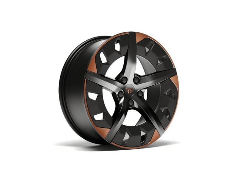 Increase the individuality of your CUPRA Formentor with 19” 5-spoke AERO alloy wheels in sporty black and copper