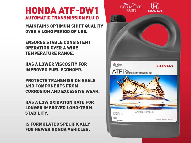 Honda automatic transmission fluid ATF-DW1 has a unique formulation specifically manufactured to meet the Honda quality standards.