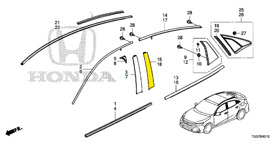Genuine Honda Civic Rear Left B Pillar Door Garnish 2017-2021 (72470TEDT01)