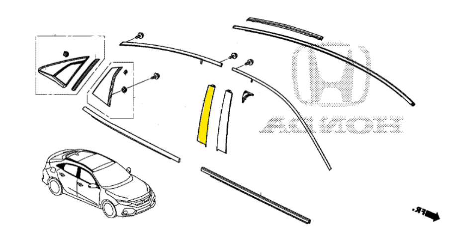 Genuine Honda Civic Rear Right B Pillar Door Garnish 2017-2021 (72930-TED-T01)