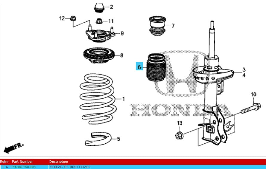 Genuine Honda Front Shock Absorber Sleeve – Civic 2012-2017 (51686TV0E01)
