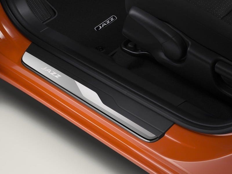 This attractive accessory allows you to add a personal touch to your car while subtly protecting its door sills. Crafted in stainless steel with a combination of brushed and mirrored finishes, the doorstep garnish has an etched Jazz logo.