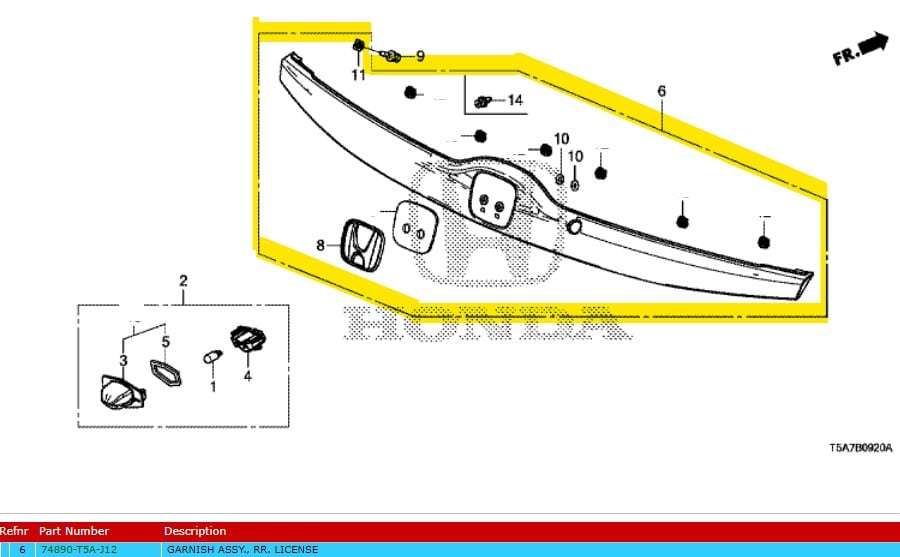 Genuine Honda Jazz Rear Tailgate Garnish 2016-2019 (74890-T5A-J12)