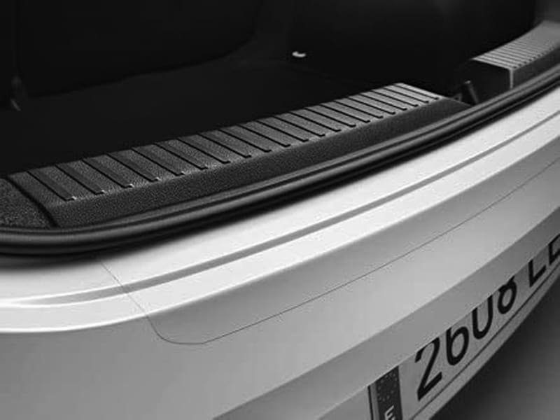 Transparent adhesive foil adapted to perfectly fit the contours of the rear bumper to help protect the painted finish when loading and unloading cargo from the boot.