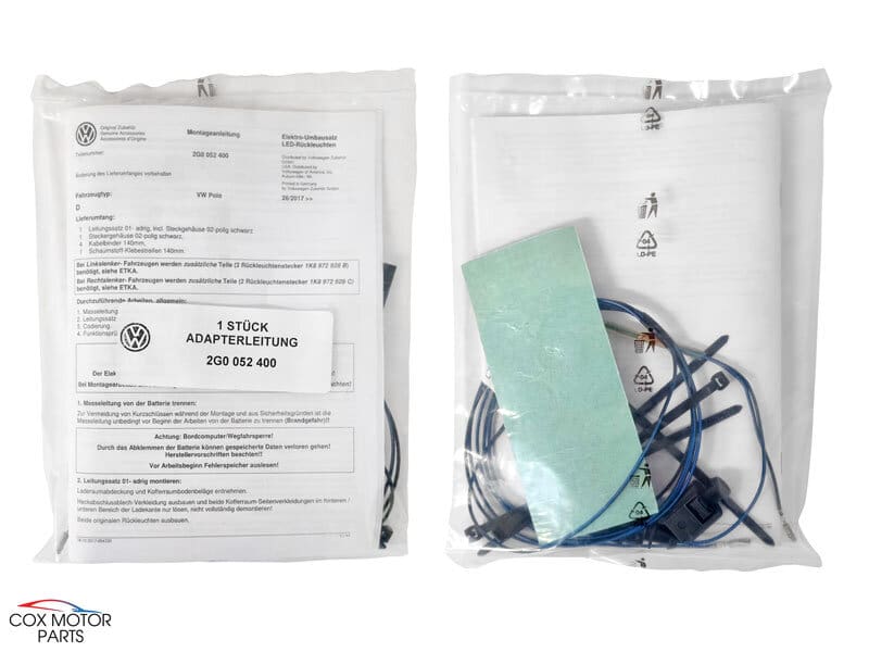 Contents: 1 set consisting of 2 LED tail lights, adapter for the electrical installation kit, coding instructions and installation instructions.