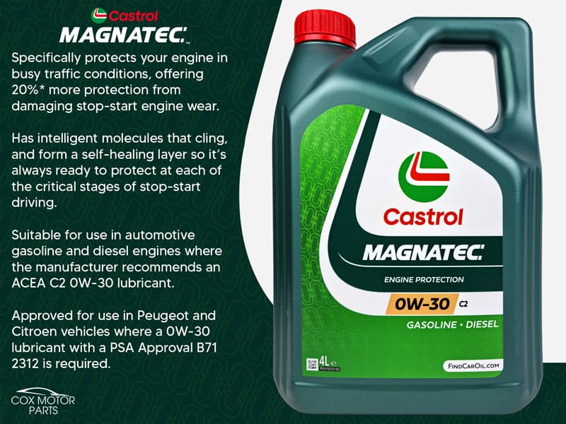 - Approved for use in Peugeot and Citroen vehicles where a 0W-30 lubricant with a PSA Approval B71 2312 is required ✔
