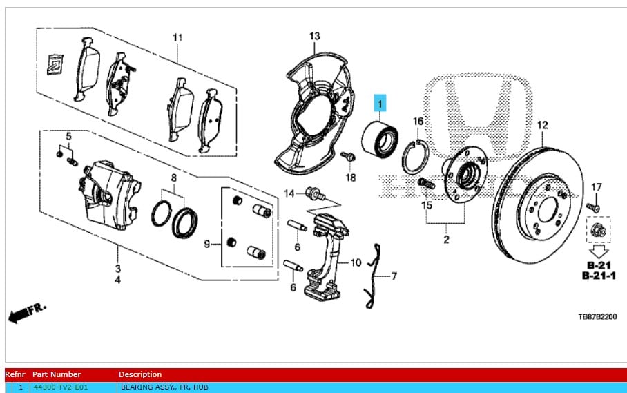 Genuine Honda Civic 2012-2016 Front Wheel Bearing (44300TV2E01)