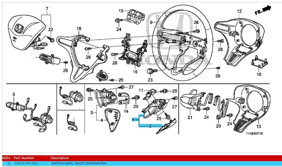 Genuine Honda Jazz 2012-2015 Multi Information Switch Assembly (35870-TF0-003)
