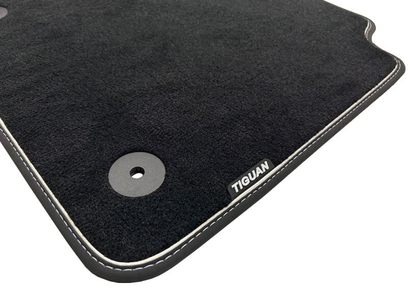 Textile floor mats. Made from durable, high-quality velour. With Tiguan branding. Helps to protect the vehicle interior. Simple attachment of the driver’s floor mat using the standard two-point fastening system. Prevents slipping and twisting.