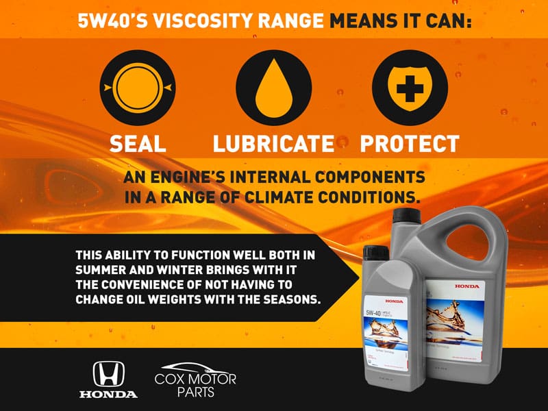 ALL MOTOR OIL IS RATED BASED ON ITS VISCOSITY, OR RESISTANCE TO FLOW, AND HOW IT PERFORMS AT TEMPERATURE EXTREMES. 5W-40 OIL IS SUITED TO A BROAD RANGE OF TEMPERATURES, but outperforms at higher temperatures, making it the oil of choice for higher performance vehicles, or in regions with a higher ambient temperature.