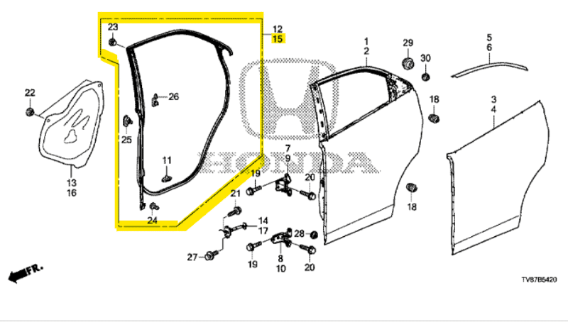 Genuine Honda Left Rear Weather Strip (72850TV0E02)