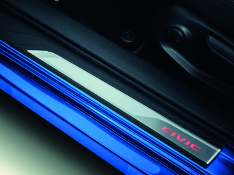 Crafted in brushed stainless steel and red illuminated “Civic” logo, illuminated door sill trims protect the inner door from marks and scratches. Includes: illuminated front and non-illuminated rear trims. *Suitable for 1.5 Sport or 1.5 Sport Plus*