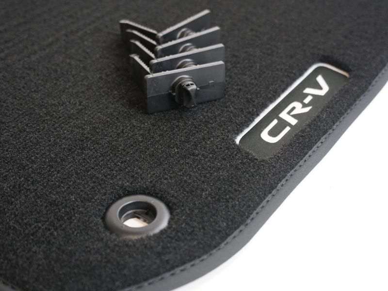 These elegant and comfortable fitted tufted carpets, with black woven binding, have an embroidered CR-V emblem.