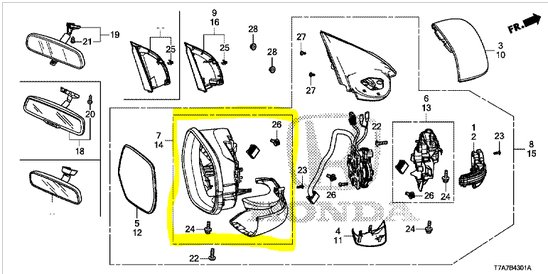 Genuine Honda HR-V Right Side Mirror Housing Set 2015-2021(76205T8KG22)
