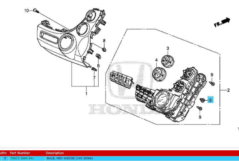 Genuine Honda Civic 2006-2011 Dashboard Heater Control Bulb (79671SMA941) BULB, NEO WEDGE (14V 80MA)
