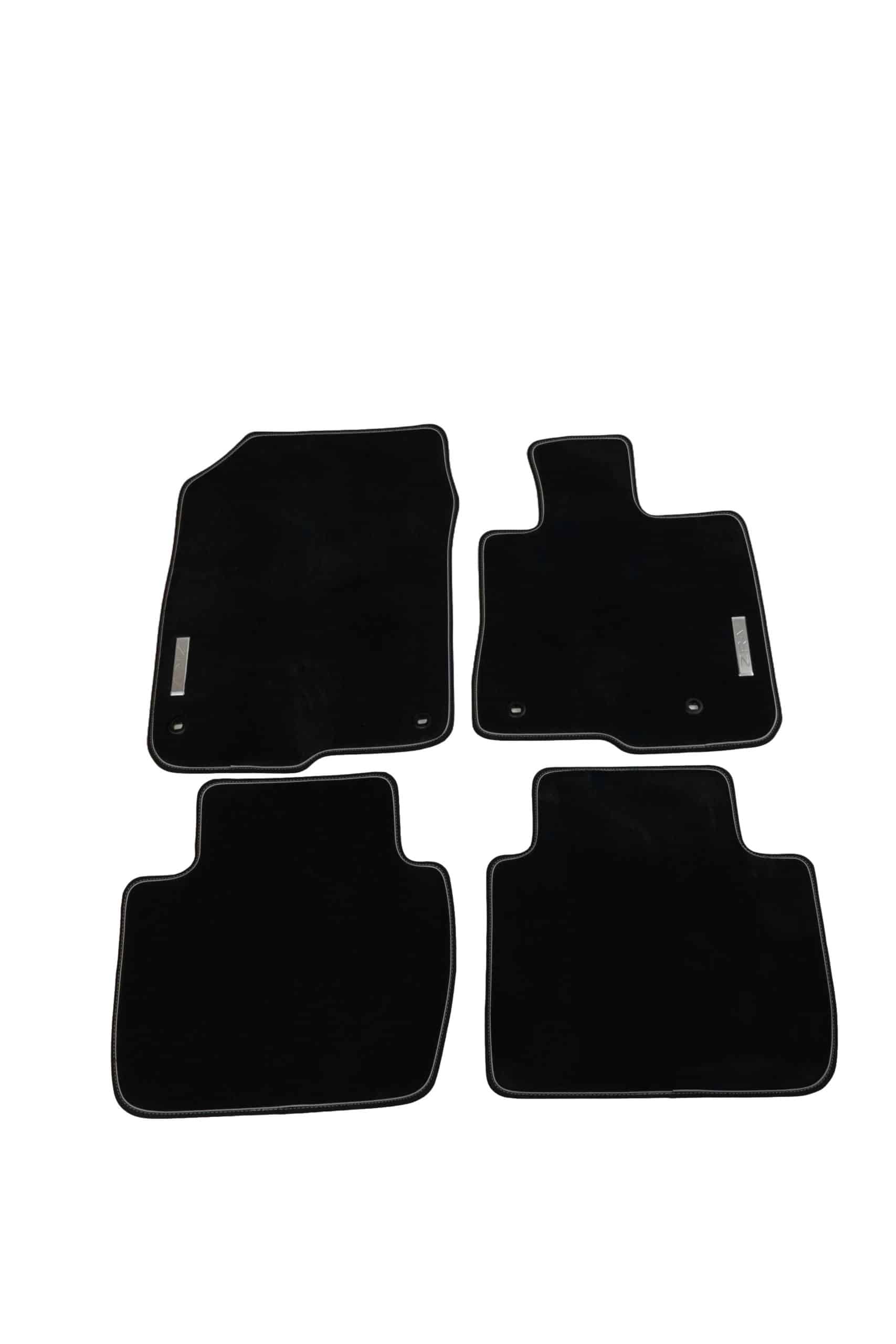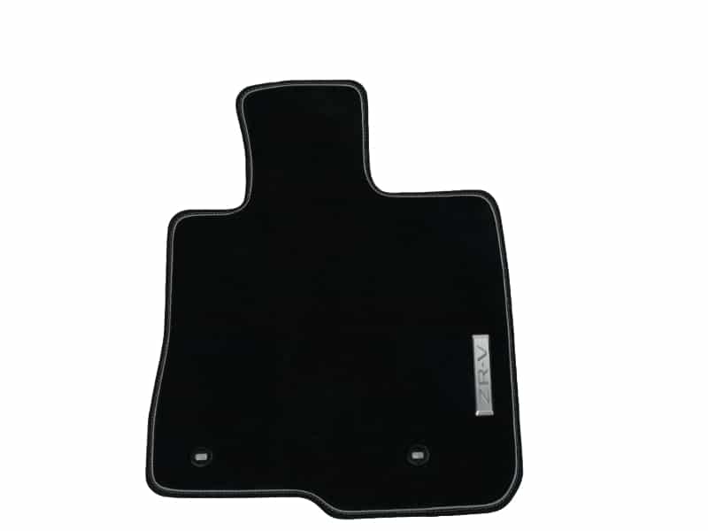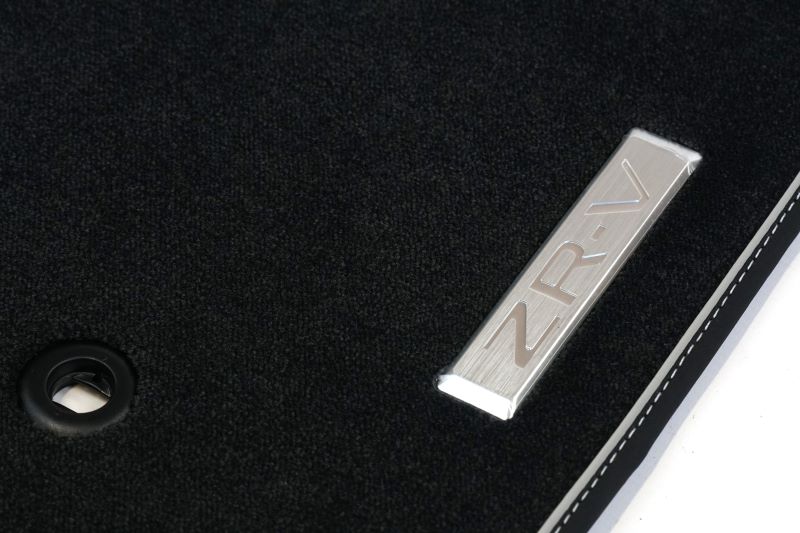 Black/silver – These premium and comfortable fitted tufted carpets, with a dual tone black/silver binding, have a metal ZR-V emblem for durability. One set includes: front and rear mats.