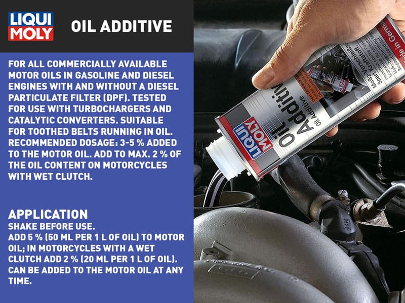 Shake before use. Add 5Â % (50Â ml per 1Â l of oil) to motor oil; in motorcycles with a wet clutch add 2Â % (20Â ml per 1Â l of oil). Can be added to the motor oil at any time.Â