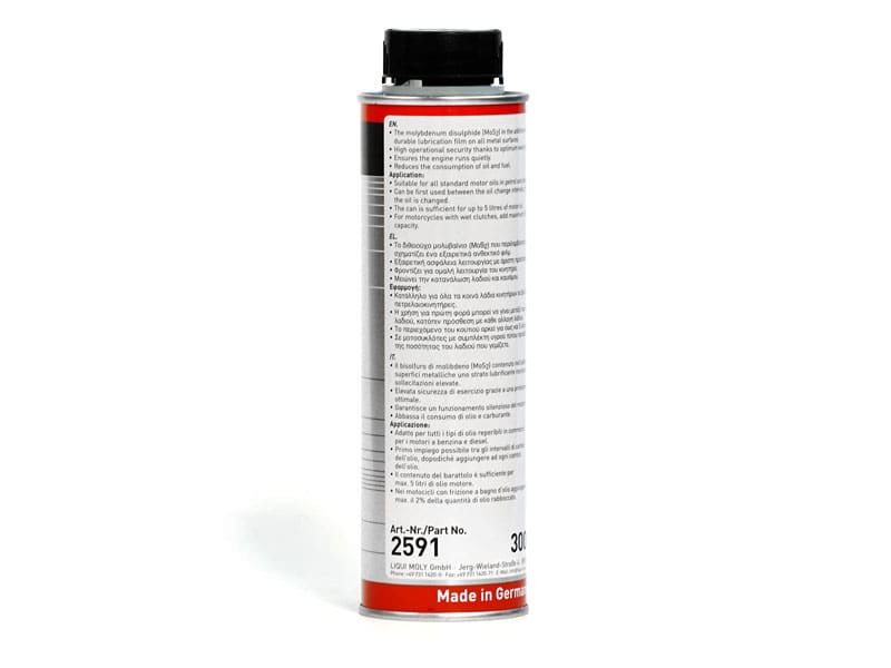 The MoS2 lubrication enhancer contained forms a high-load lubricating film on all rubbing and sliding metal surfaces. It reduces friction and ensures smoother running of the assemblies. This results in considerable fuel and oil savings, a scientifically proven reduction in rate of wear, high operating reliability and reliable emergency running properties.