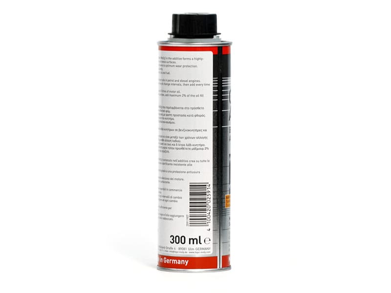 For all commercially available motor oils in gasoline and diesel engines with and without a diesel particulate filter (DPF). Tested for use with turbochargers and catalytic converters. Suitable for toothed belts running in oil. Recommended dosage: 3-5Â % added to the motor oil. Add to max. 2 % of the oil content on motorcycles with wet clutch.