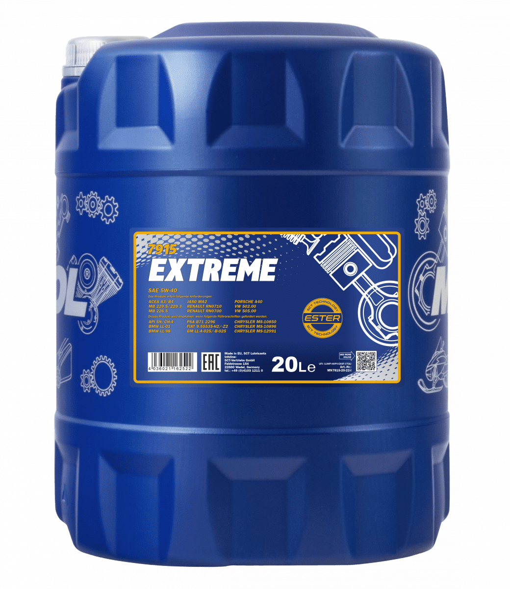 Mannol Extreme 5W40 (7915) Acea A3/B4 Api Sn/Ch-4 Fully Synthetic Oil - 20 L