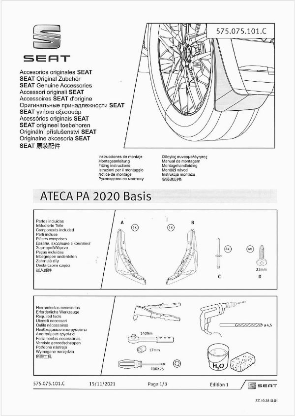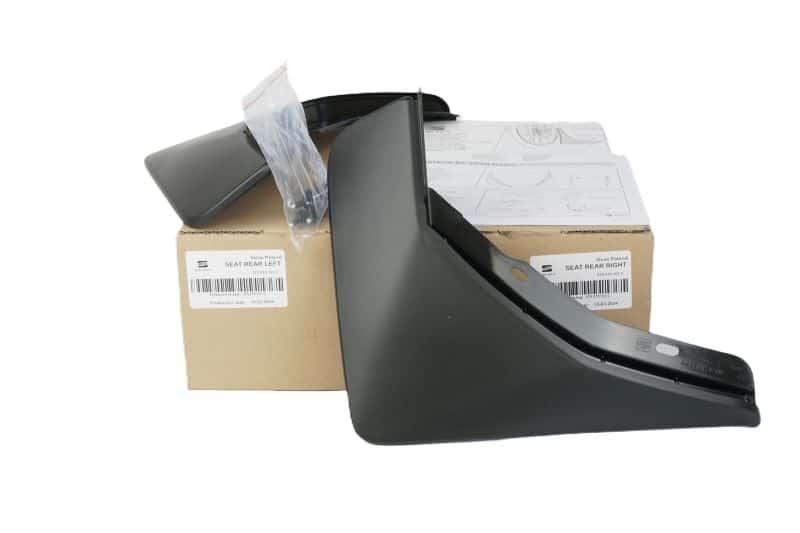Set of rear mudflaps for the Ateca PA KHP version (compatible with Reference, Style, XPerience versions and not compatible with FR version). They protect the rear bumper from materials projected from the rear wheels during driving. Includes all required fastening elements and assembly instructions.