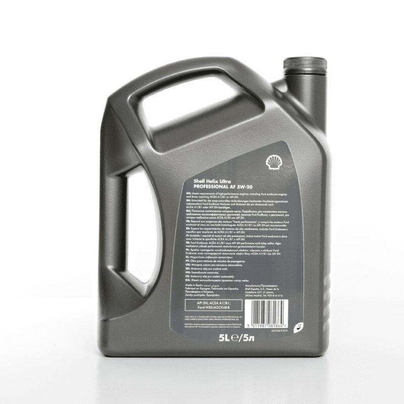 Shell Helix Ultra Professional AF 5W-20 for gasoline engines was formulated specifically for use in Ford vehicles with the “Ecoboost” engine requiring WSS-M2C948-B and where API SN or ACEA A1/B1 are specified. It is also backwards-compatible with the majority of Ford gasoline engines including those that require the following oil specifications of WSS M2C913-B, WSS M2C913-C or WSS M2C925-A.