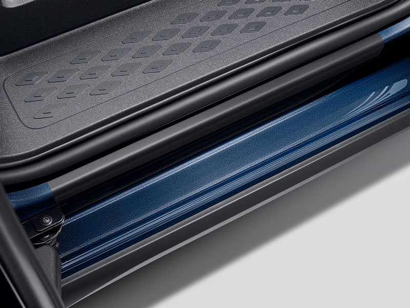 Volkswagen Genuine sill panel trim films. Black with silver decorative stripes. Front and rear, 4-piece. Visually enhances the vehicle. Protects against scratches around the door sill. Precisely cut. Easy to stick on.