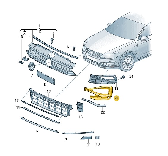 Genuine VW Passat Front Left Fog Light Cover 2015-2024 (Black) (3G0853793C041)