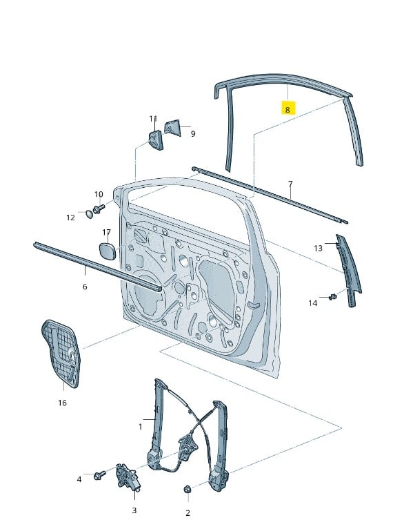 Genuine Seat Leon 2017-2020 Right Side Window Guide (5F4837432H5AP)